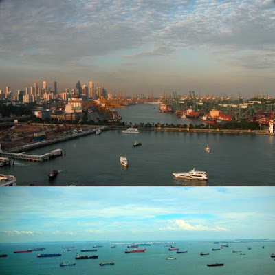O porto da Cidade de Singapura é um dos mais movimentados do mundo e fica num ponto estratégico no Oceano Pacífico, na parte sul do estreito de Malaca. Dali saem navios carregados de produtos electrónicos e de alta tecnologia, que correspondem à principal pauta de exportação do país. Juntamente com Hong Kong, Coreia do Sul e Taiwan, Singapura é considerada um dos Quatro Tigres Asiáticos. A quantidade de navios vistos da costa é impressionante.